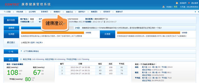 第一步:点击主页上方的“健康建议”,进入健康建议页面