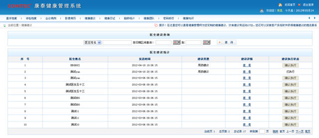 功能描述:查看健康管理师为用户指定的健康建议、饮食建议和运动计划。