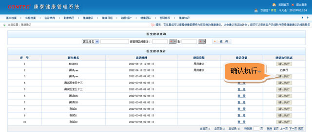 第一步:进入到“健康建议”界面后,点击“建议执行状态”下的“确认执行”按钮。