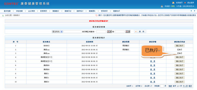用户也可以通过医生建议查询,通过筛选后,再进行“查 看”操作。