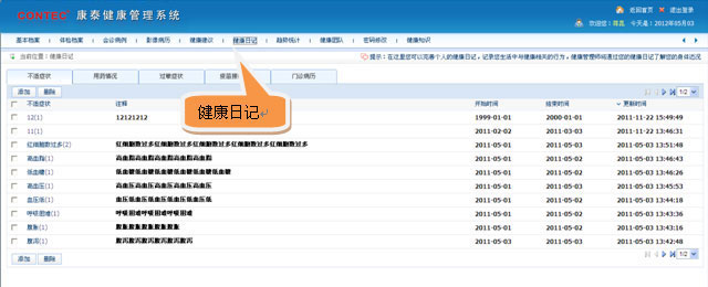 第一步:用户在首页点击“健康日记”链接进入到健康日记界面如下图所示: