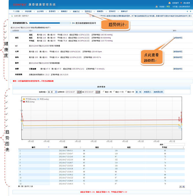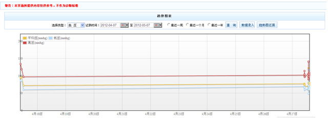 (2)用户可以选择“记录时间”范围,查看对应的趋势图表。时间范围要求是同一年。