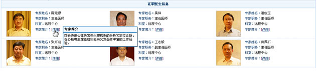 将鼠标移动到专家简介:【详细】上,即可查看专家擅长领域或诊疗方向。