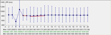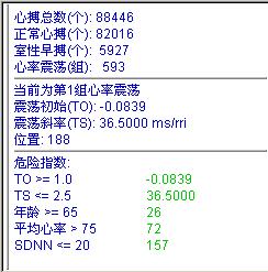 图形下方的三排数字分别表示了该点相对位置出现的RR间期的最大、平均、以及最小值。