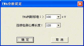 使用者可对TWA判断标准以及连续检测的心搏长度进行分别的设定,TWA判断标准的选择范围为40-100微伏,连续检测心搏长度为:8-128。该设定是为了更方便使用者对整个波形进行分析,最大限度的减少误判和漏判。